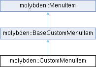 Public Member Functions inherited from molybden::BaseCustomMenuItem | |