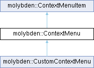 Public Member Functions inherited from molybden::ContextMenuItem | |